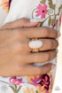 This golden ring with a large oval-shaped white stone is a must-have for those who like bold and unconventional designs. Its unique and stylish combination will surely catch the eye of trendsetters.